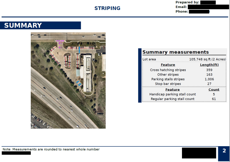Below you will find some screenshot samples of the PDF document that you may receive in your estimate proposal, if available, which shows you exactly where your money is going. At H&H Striping, we are always utilizing forward moving technologies to help improve customer experience.